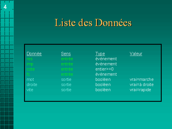 Ce n'est pas une entrée physique à proprement parler, mais c'est un événement, produit à la mise sous tension de l'ensemble chariot-système de commande.