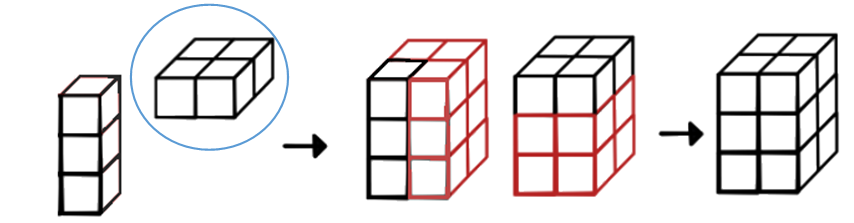 Le tableau entouré en bleu est un tableau de dimensions \((2,2)\), le vecteur colonne sur la gauche a pour dimensions \((3,1,1)\). Après broadcasting, le résultat est un tableau de taille \((3,2,2)\).