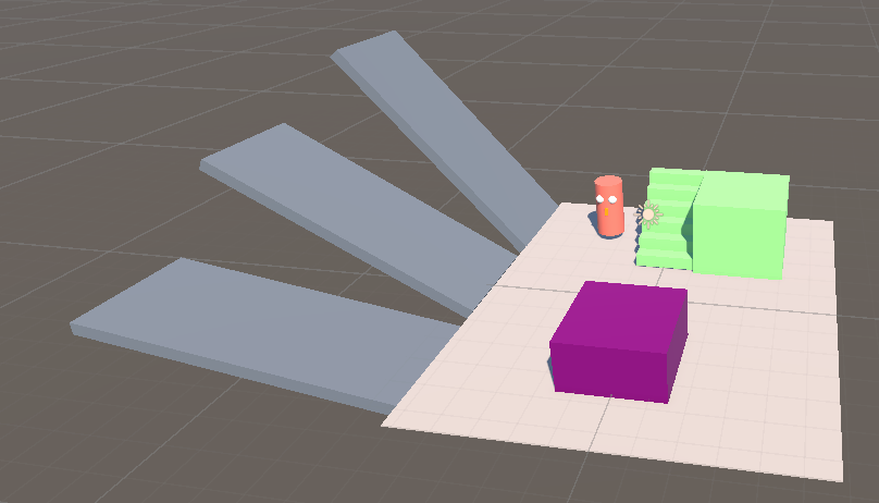 Using scaled cubes, build ramps along the edge of the world with different slopes