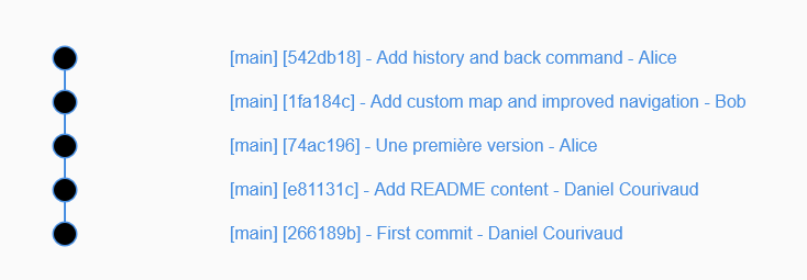 Associer une commande history, associée à la méthode get_history() écrite précédemment, pour permettre au joueur de consulter son historique à tout moment. La commande history doit être déclarée dans la liste des commandes disponibles.