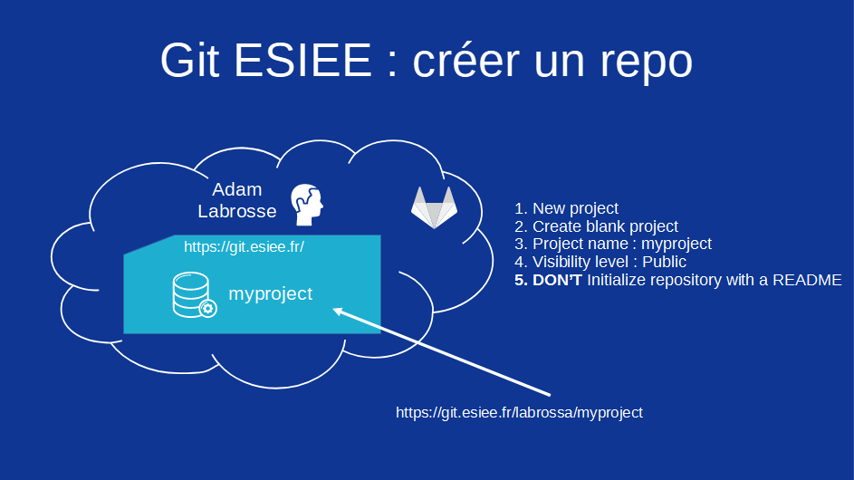 Pour synchroniser son travail entre la machine locale et le repo distant, il faut disposer d’un compte sur une plateforme. Pour les élèves de l’ESIEE, un compte est déjà créé sur https://git.esiee.fr.