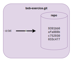 Bob va maintenant ajouter du contenu dans son répertoire de travail, d’abord en modifiant le fichier cr.txt qu’il a récupéré du repo central.
