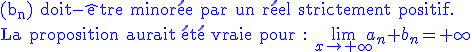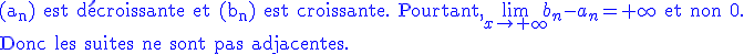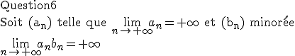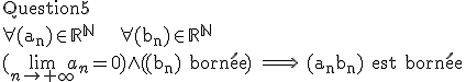 D'apres une proposition du cours, la suite (anbn) tend vers 0, donc est convergente. D'apres un autre theoreme du cours, toute suite convergente est bornee.